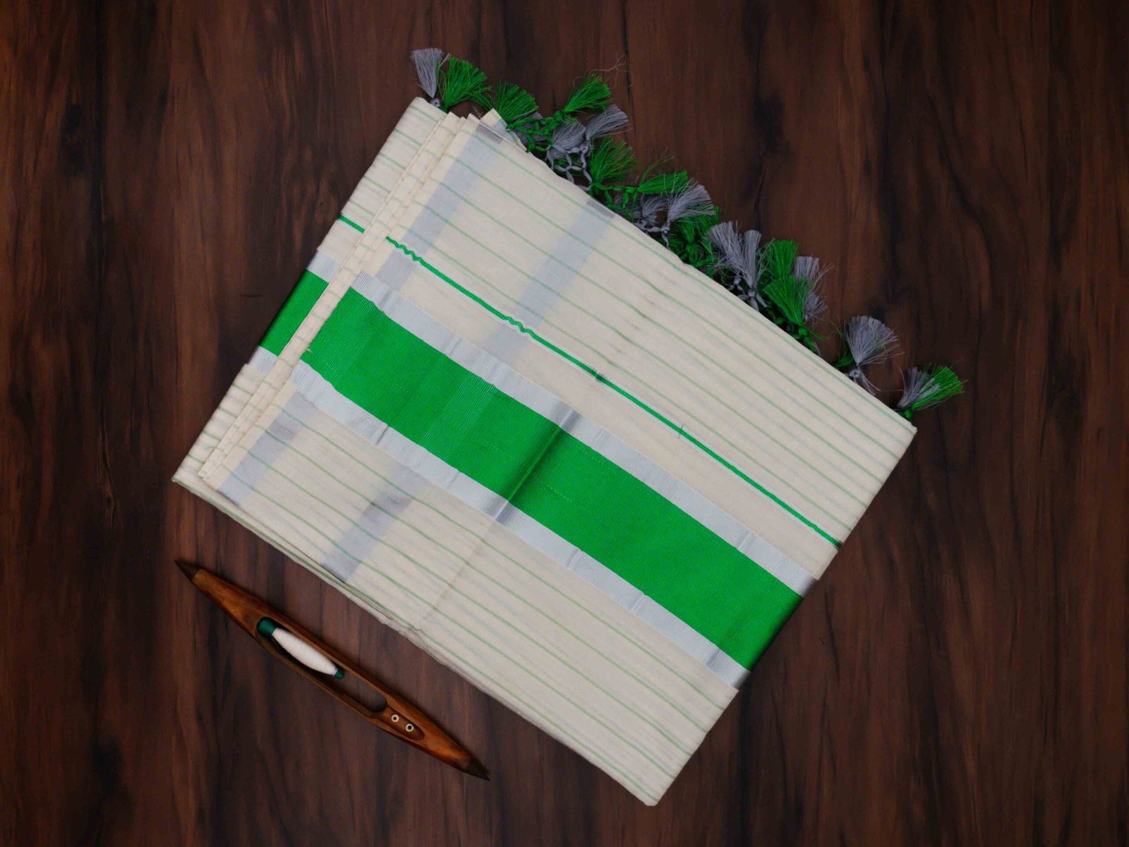 Be the first to review “Premium Silver Zari Kerala Tissue Saree with Stripes”